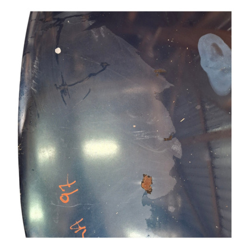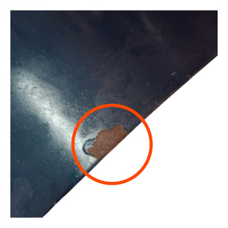 Acabamento Pintura metálica verde escuro com sinais de desgaste e ferrugem